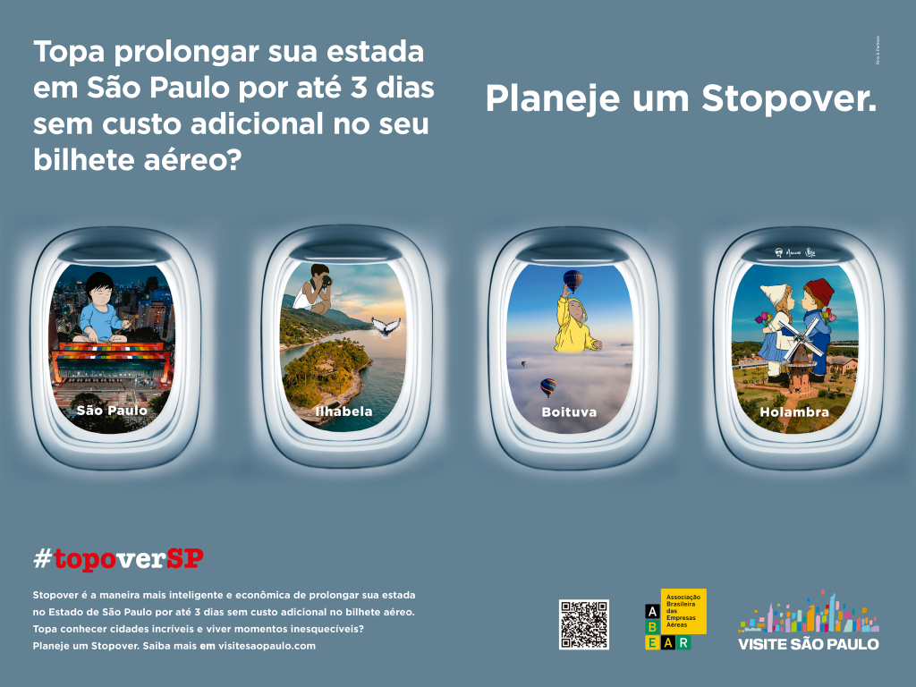 Já está no ar a campanha Stop Over SP / Topo Ver SP, realizada pelo Visite São Paulo Convention Bureau e Associação Brasileira das Empresas Aéreas (Abear), e que tem como objetivo estimular o viajante a prolongar sua estada em São Paulo por até três dias.   A ação envolve a Azul, Gol e Latam […]